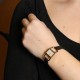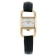Montre bracelet de femme en or jaune, cadran crème avec index appliqués. Mouvement mécanique. Bracelet cuir noir neuf avec boucle ardillon en métal doré. Signée et numérotée.
