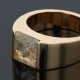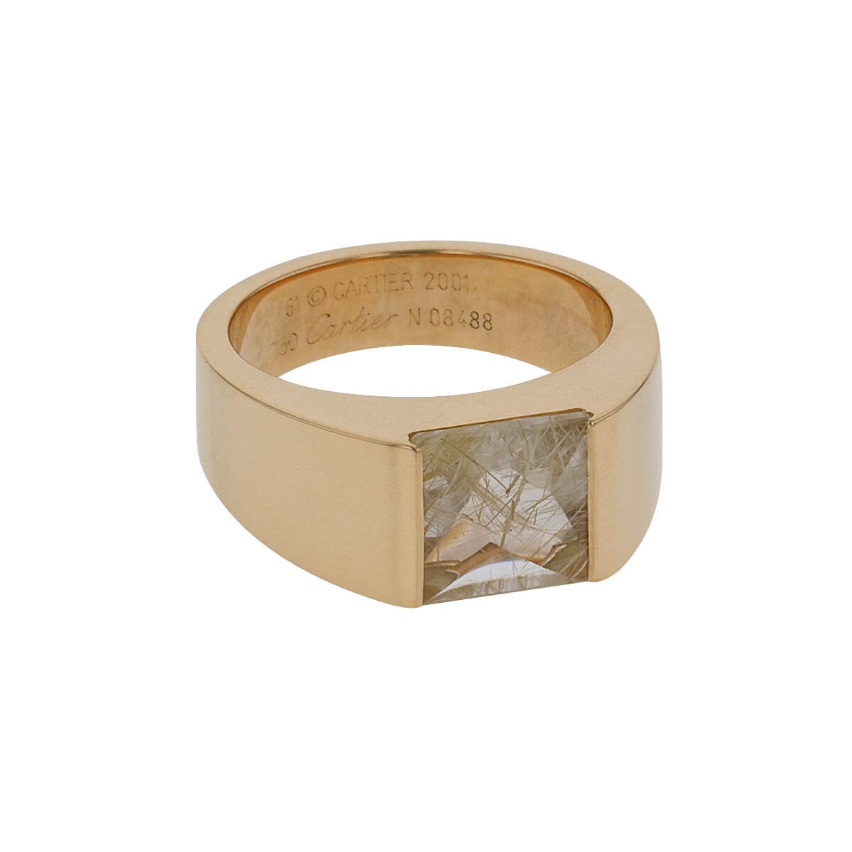 Bague en or jaune, ornée d'un quartz cheveux de vénus (quartz rutile) taille cabochon suiffé en serti rail. Signée et numérotée.