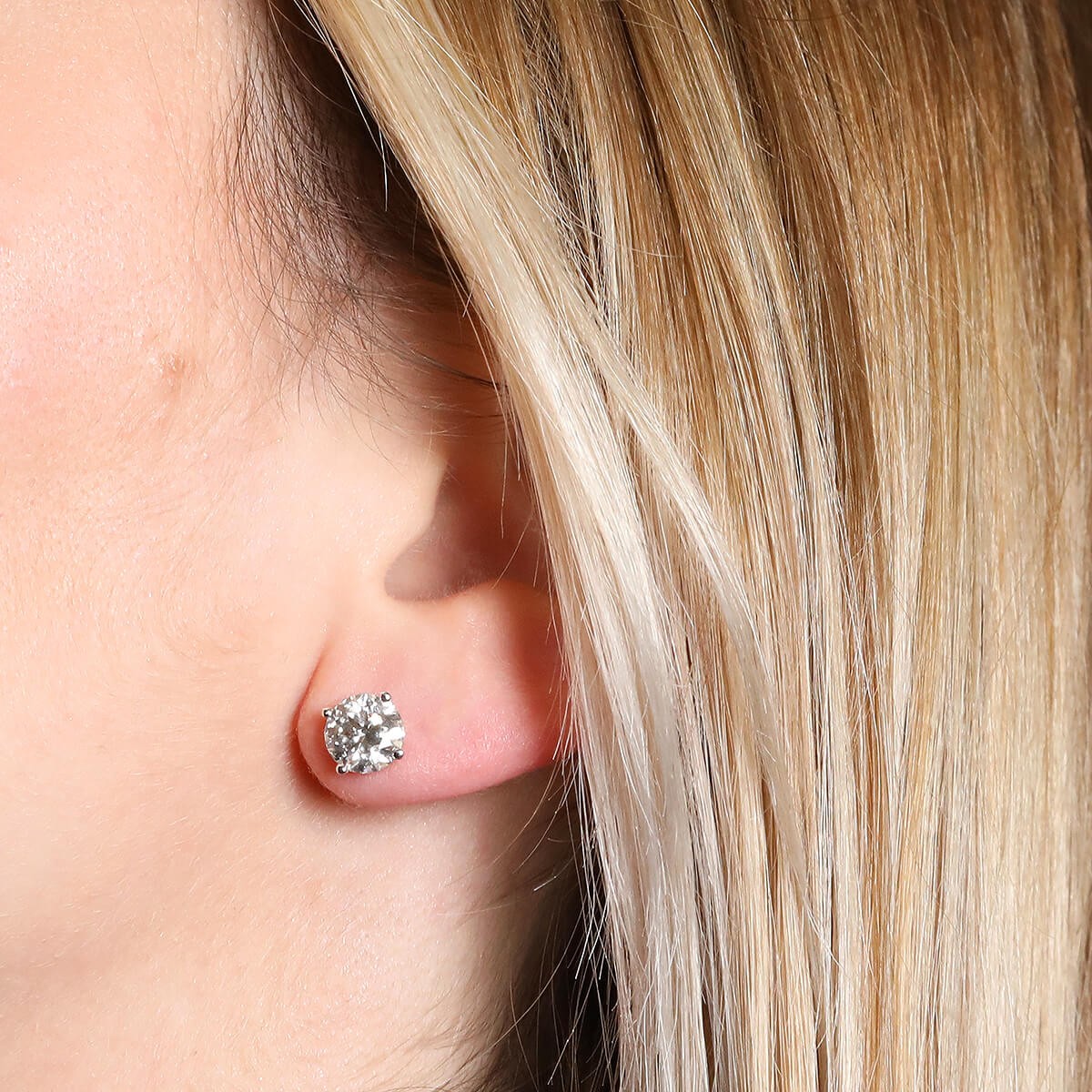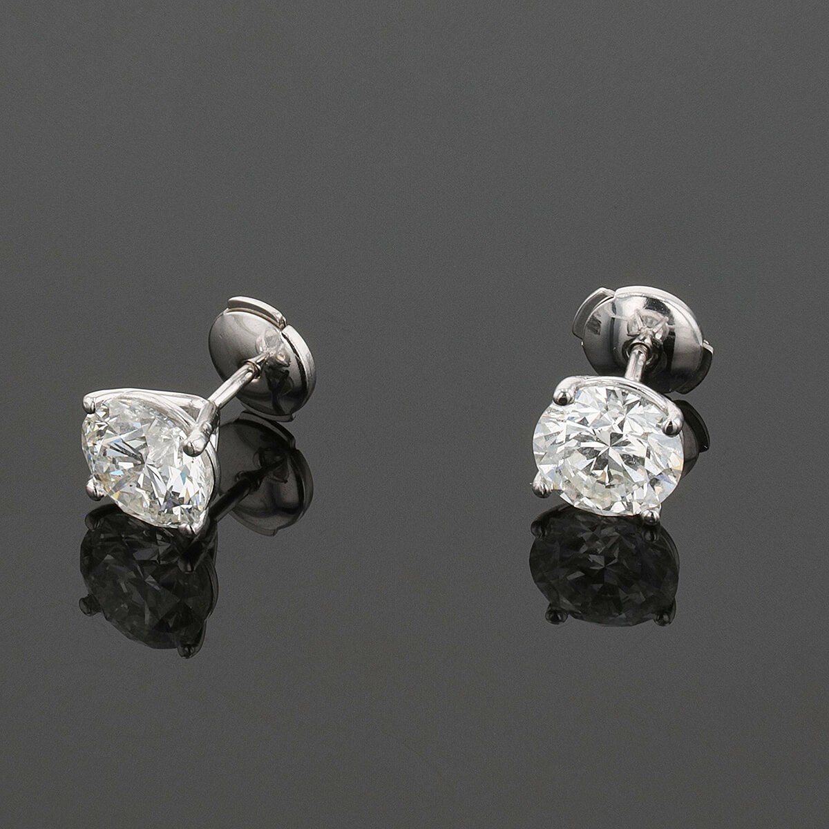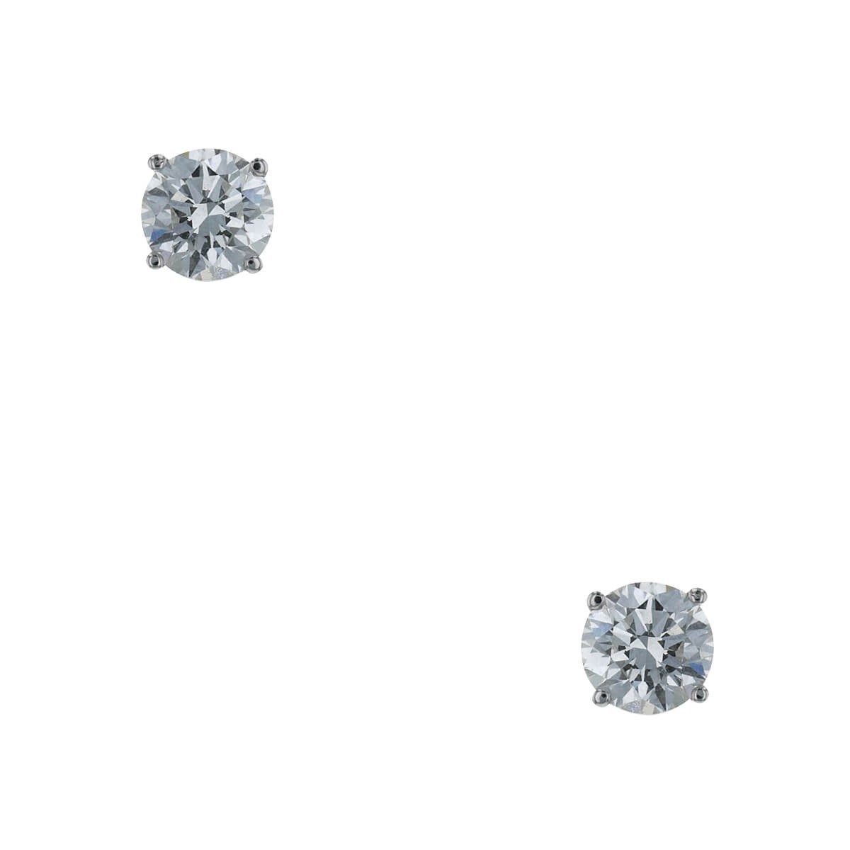 Clous d’oreilles en or blanc, sertis d’un diamant taille rond facetté de 1,51 chaque. Accompagnés de deux pré-certificats LFG attestant de deux diamants de 1,51 ct, couleur I, pureté SI2.