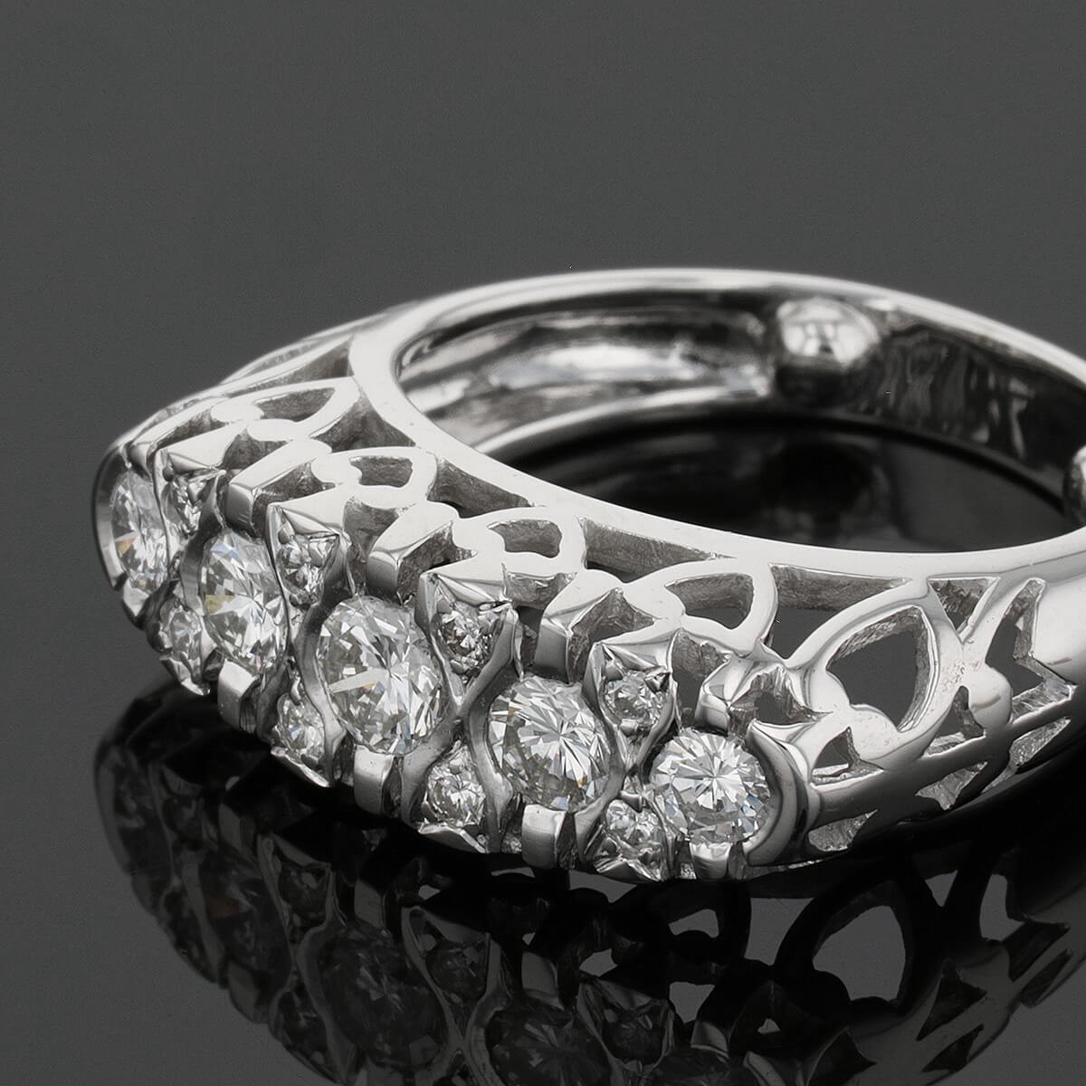 Bague en or blanc, centrée d’un plateau ovale serti de diamants, monture ajourée à décor de coeurs.