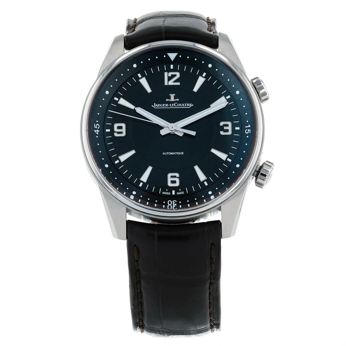 Montre bracelet d’homme en acier, cadran noir avec chiffres arabes et index luminescents, lunette tournante. Fond transparent dévoilant son mouvement automatique. Bracelet neuf en crocodile noir signé avec boucle déployante en acier. Signée et numérotée.