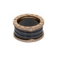 Bague en or rose et céramique noire, stylisant un large anneau en spirale gravé Bvlgari et sertie de deux lignes de diamants. Signée et numérotée.