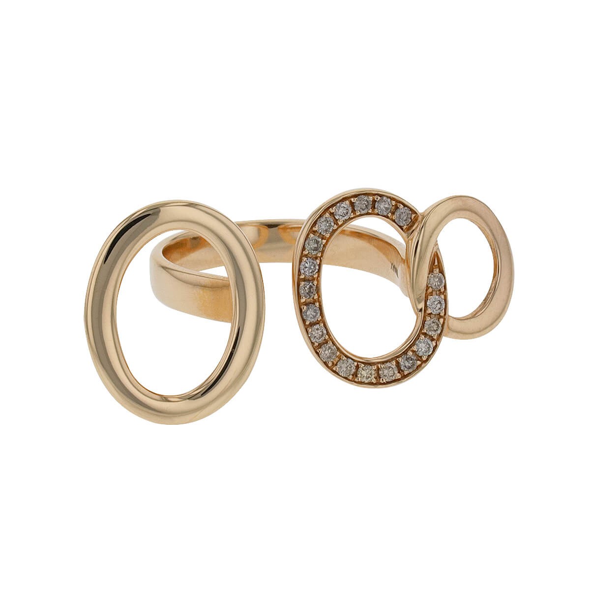 Bague en or rose, à décor de 3 cercles dont un orné de diamants de couleur cognac. Signée et numérotée.