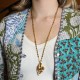 Collier en or jaune, maille stylisée retenant un motif stylisant une panthère, les yeux et la bélière rehaussés de diamants, agrémenté d’un fermoir mousqueton. Signé et numéroté.