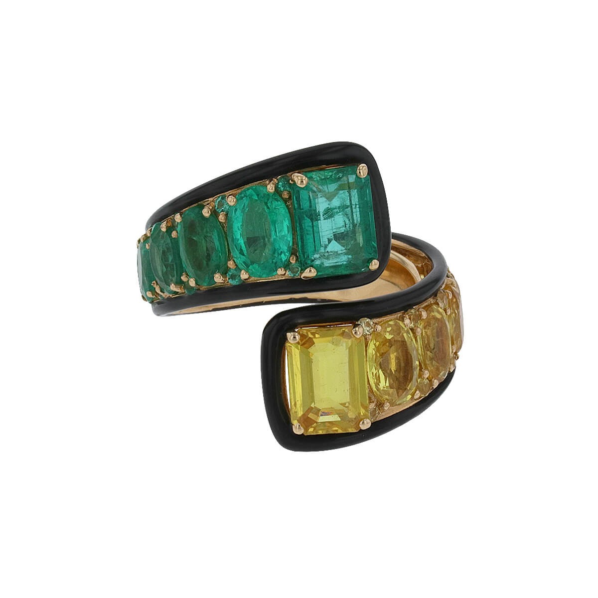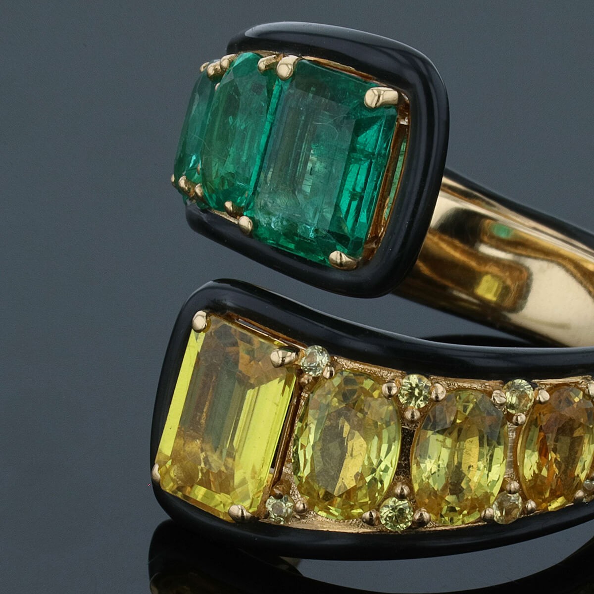 Gold, ceramic, emeralds and yellow sapphires ring.