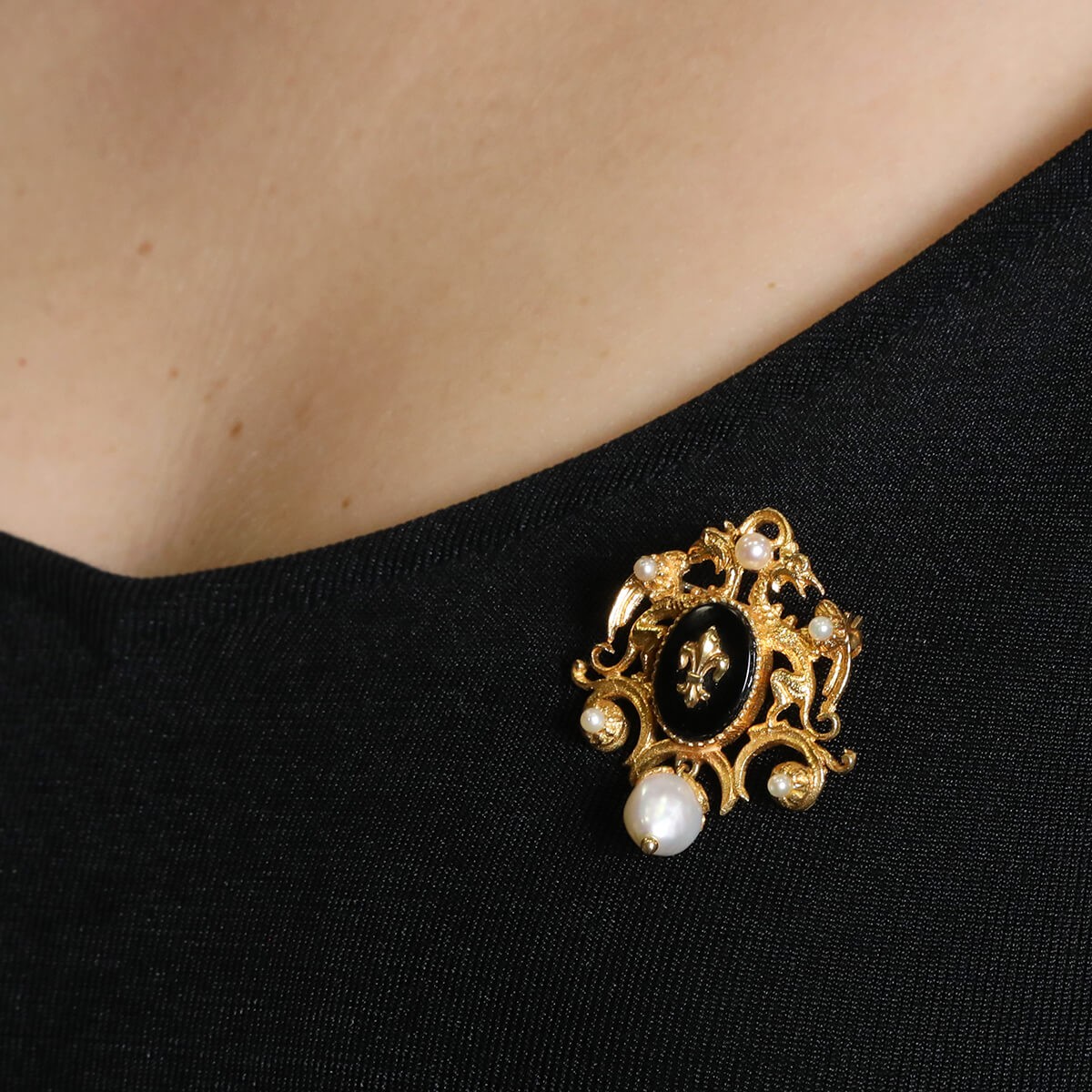 Gold and pearls brooch