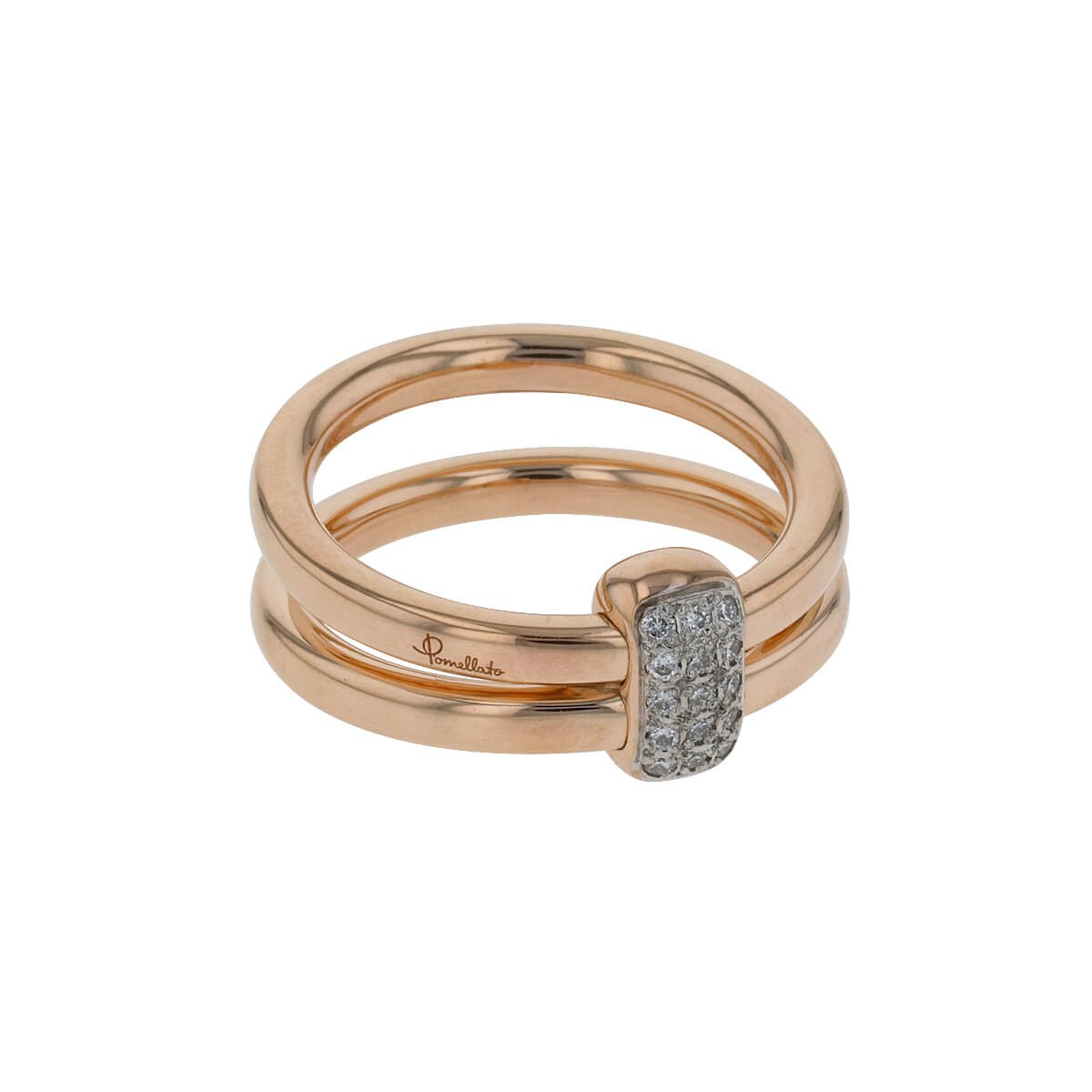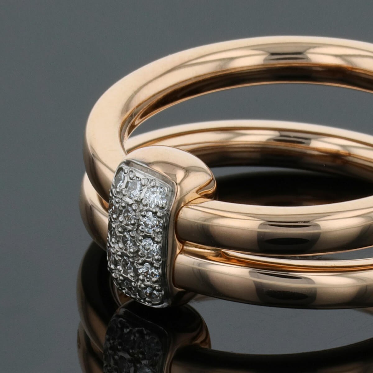 Bague en or rose, composée de deux anneaux retenus par un lien serti de diamants sur or blanc. Signée et numérotée.