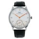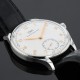 Montre en acier, cadran argenté avec chiffres arabes appliqués, chemin de fer pour les minutes. Petite trotteuse à 6 heures. Fond transparent dévoilant son mouvement automatique. Bracelet en crocodile noir signé usagé avec boucle ardillon en acier. Signée et numérotée.