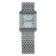 Montre bracelet de femme en acier, grand modèle, cadran argenté rayé avec index appliqués, lunette godronnée. Mouvement quartz. Bracelet interchangeable en acier, maillons grains de riz avec boucle déployante en acier. Signée et numérotée. Accompagnée d’un bracelet supplémentaire en cuir rouge.