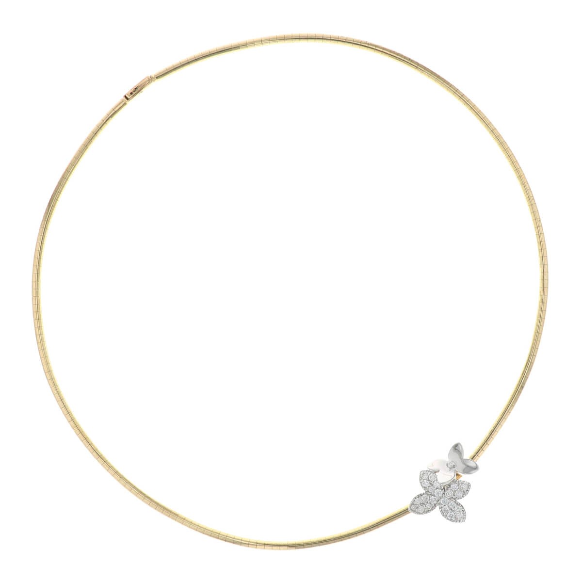Collier en or jaune, maille omega centrée d’un motif floral en or blanc rehaussé de diamants, agrémenté d’un fermoir à cliquet. Signé.