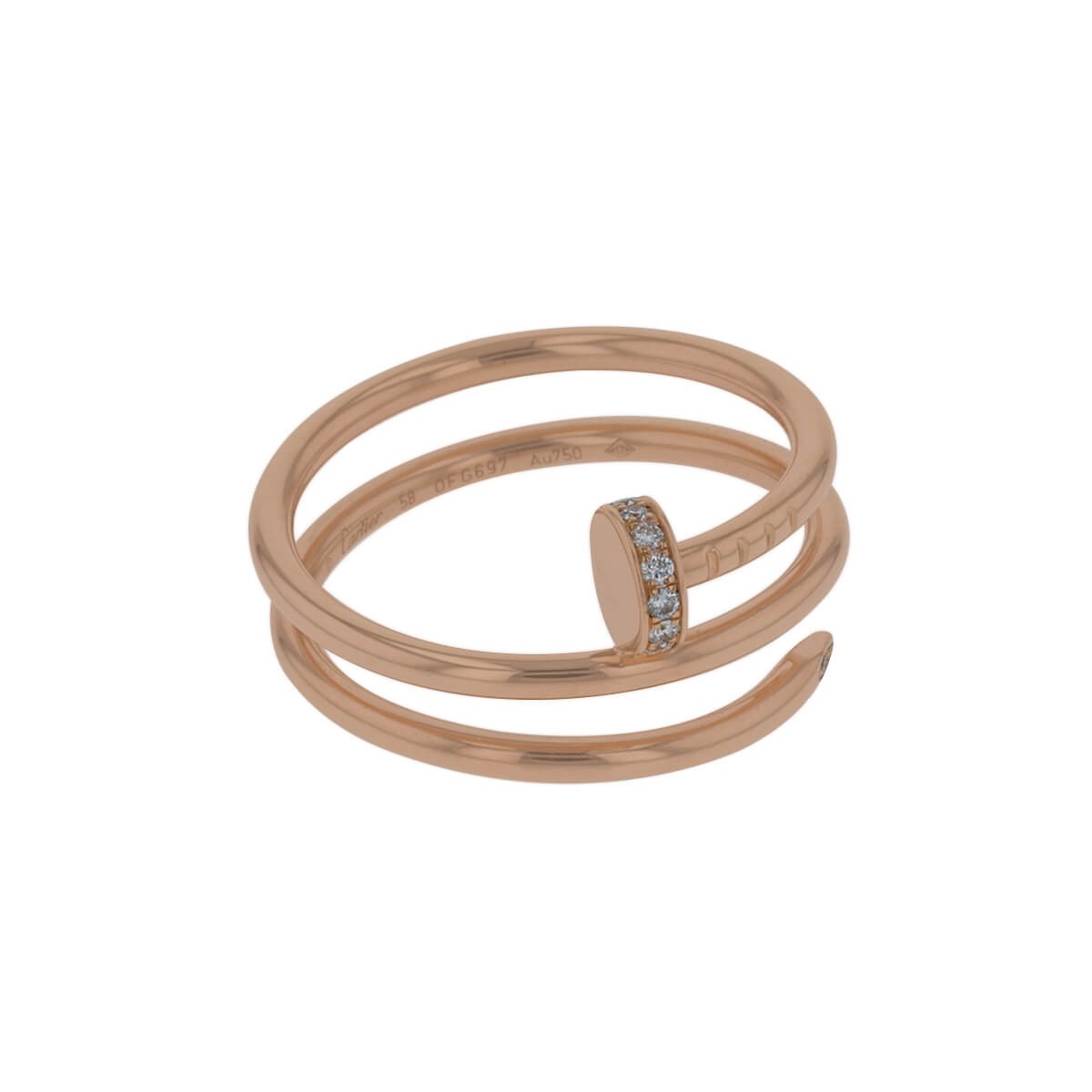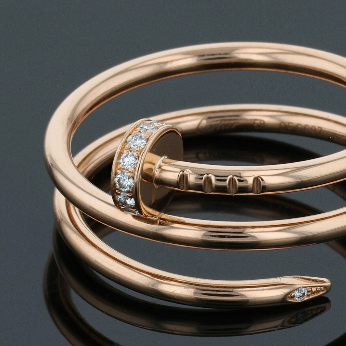 Bague en or rose double tour, stylisant un clou, la tête partiellement sertie de diamants. Signée et numérotée.
