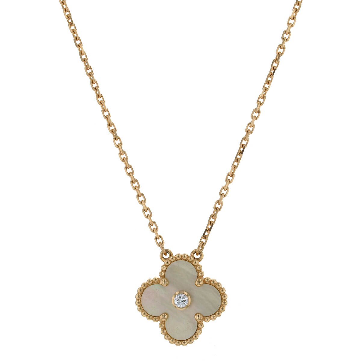 Van Cleef & Arpels Vintage Alhambra mother-of-pearl, diamond and gold necklace