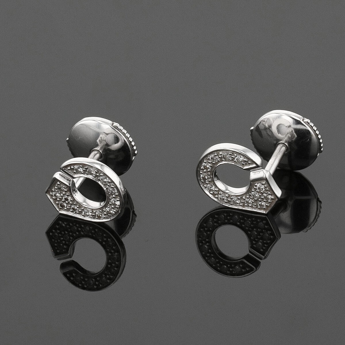 Boucles d’oreilles en or blanc, stylisant deux menottes serties de diamants. Signées.