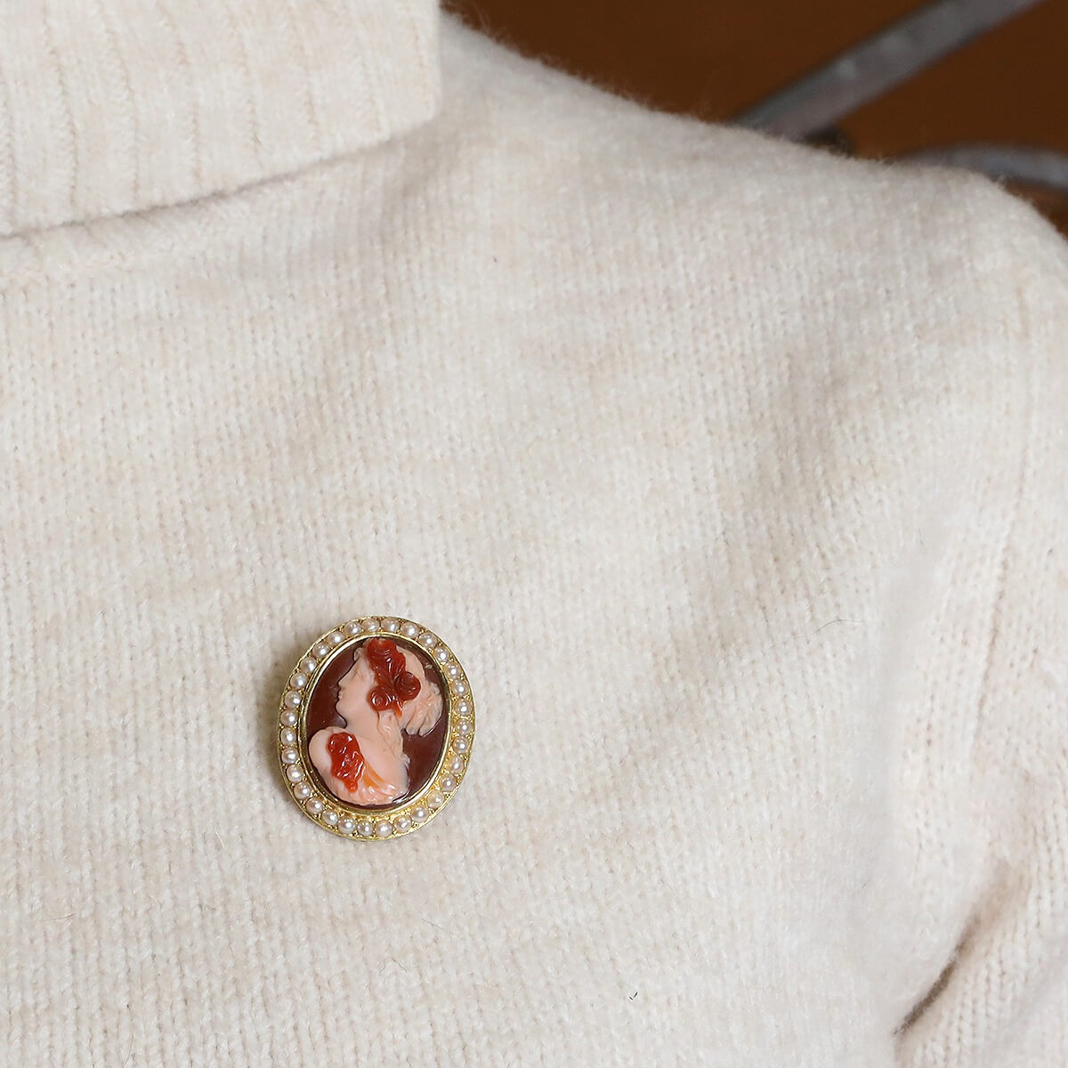 Sardonyx, mabe pearls and gold Cameo brooch