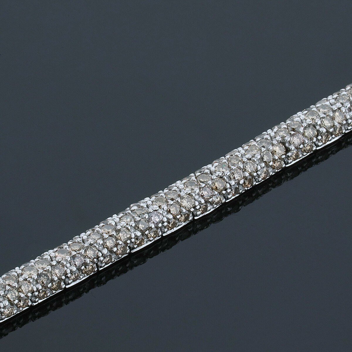 Bracelet en or blanc, composé d’une suite de maillons articulés pavés de diamants cognac, agrémenté d’un fermoir à cliquet avec huit de sécurité.