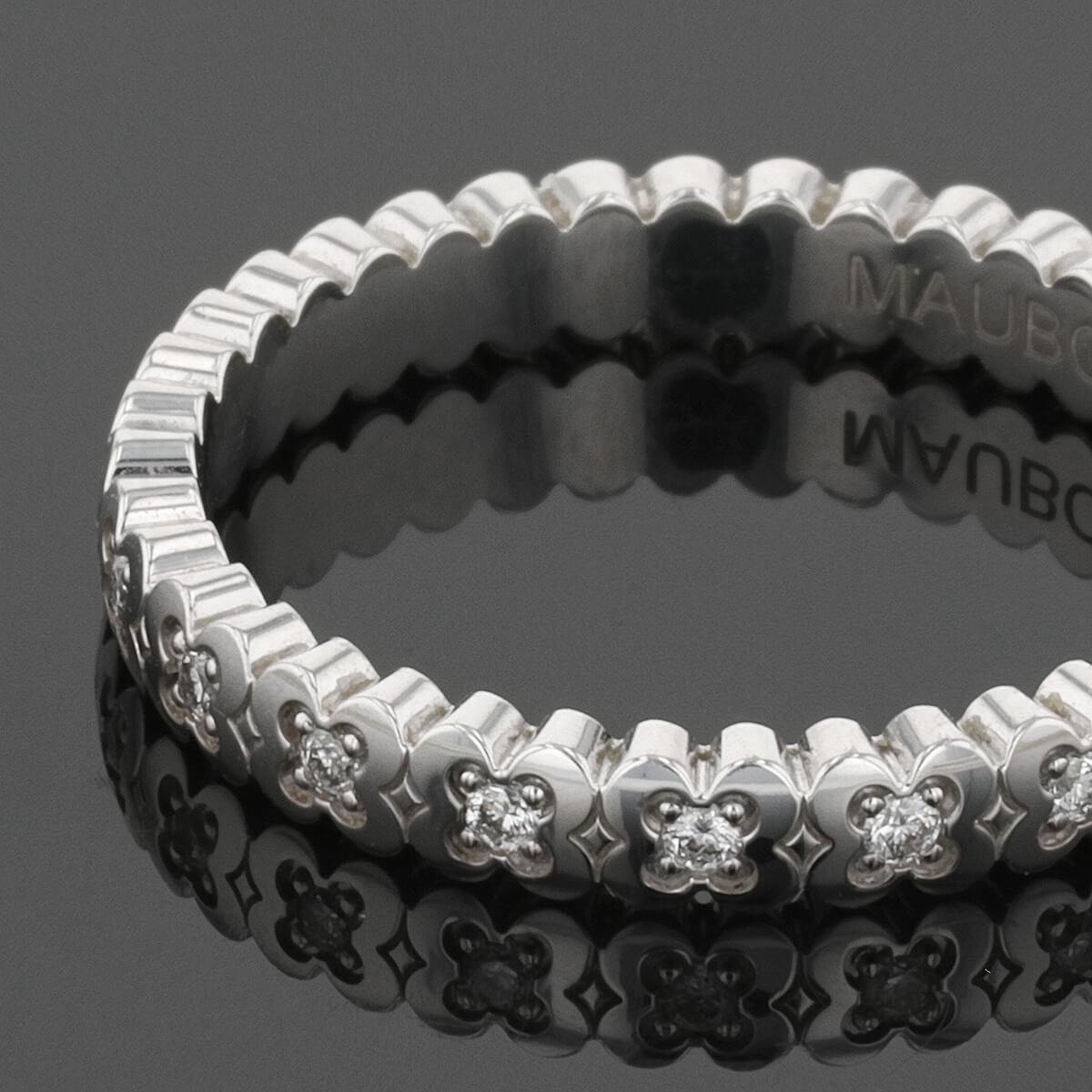 Alliance en or blanc, composée d’un tour complet de motifs de trèfles sertis de diamants. Signée et numérotée.