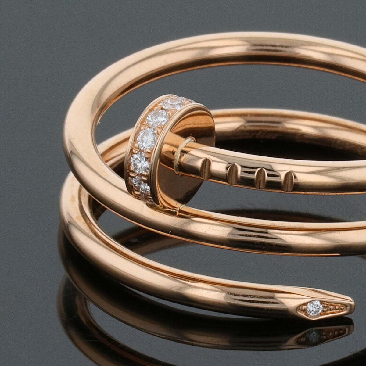 Bague en or rose double tour, stylisant un clou, la tête partiellement sertie de diamants. Signée et numérotée.