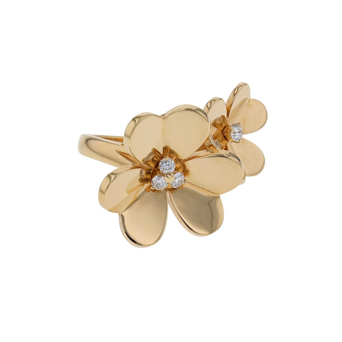 Bague en or jaune, stylisant 2 fleurs, les pistils ornés de diamants. Signée et numérotée.