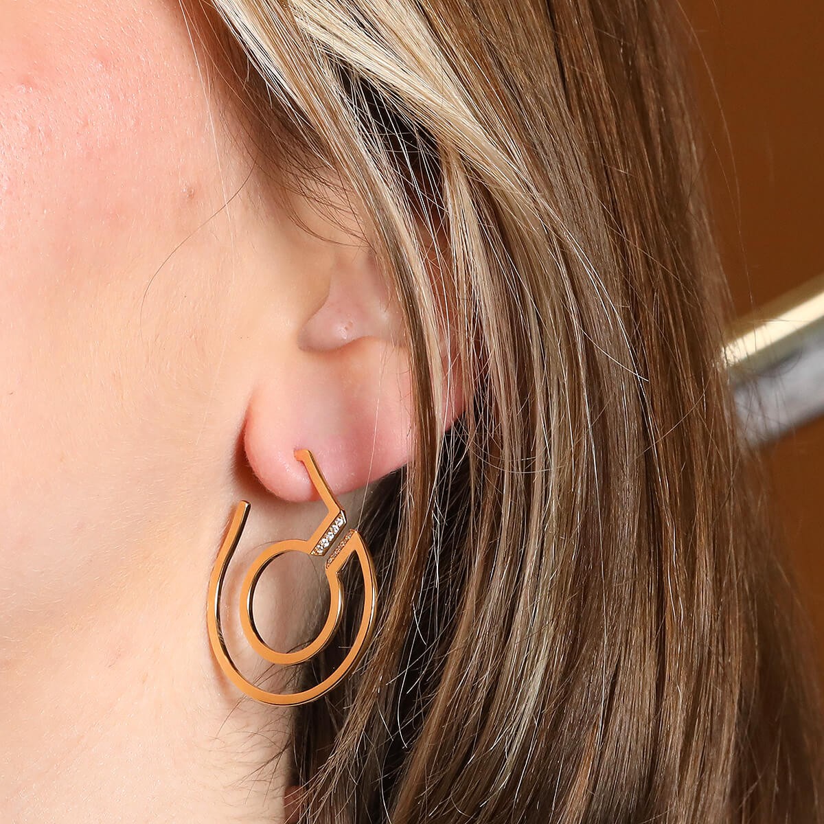 Boucles d’oreilles en or jaune, stylisant une menotte ajourée rehaussée de 2 lignes de diamants. Signées.