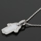 Collier en or blanc, maille forçat retenant un pendentif stylisant une main de Fatma en nacre blanche rehaussée de diamants, agrémenté d’un fermoir anneau ressort.