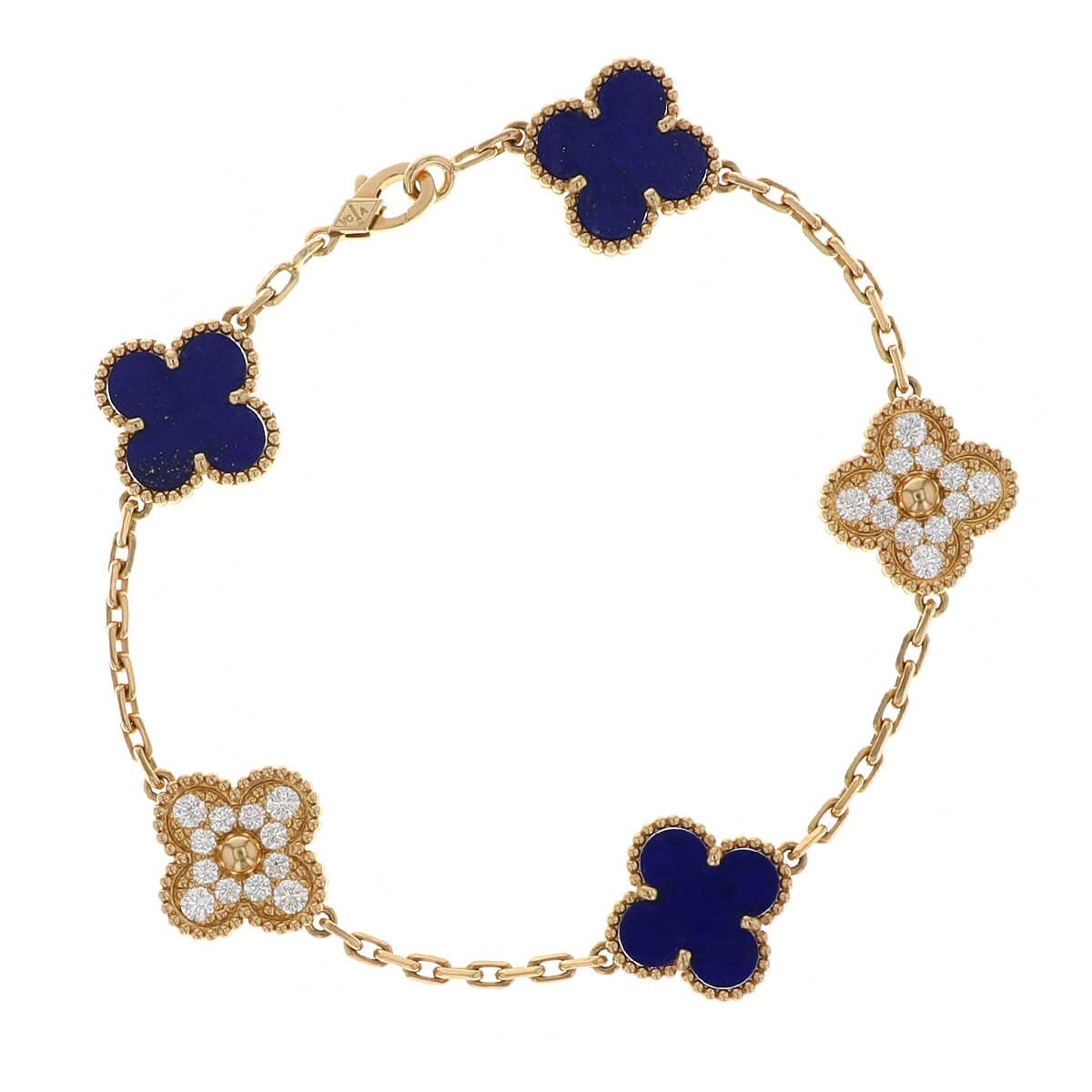 Van Cleef & Arpels Vintage Alhambra lapis lazuli, diamonds and gold bracelet