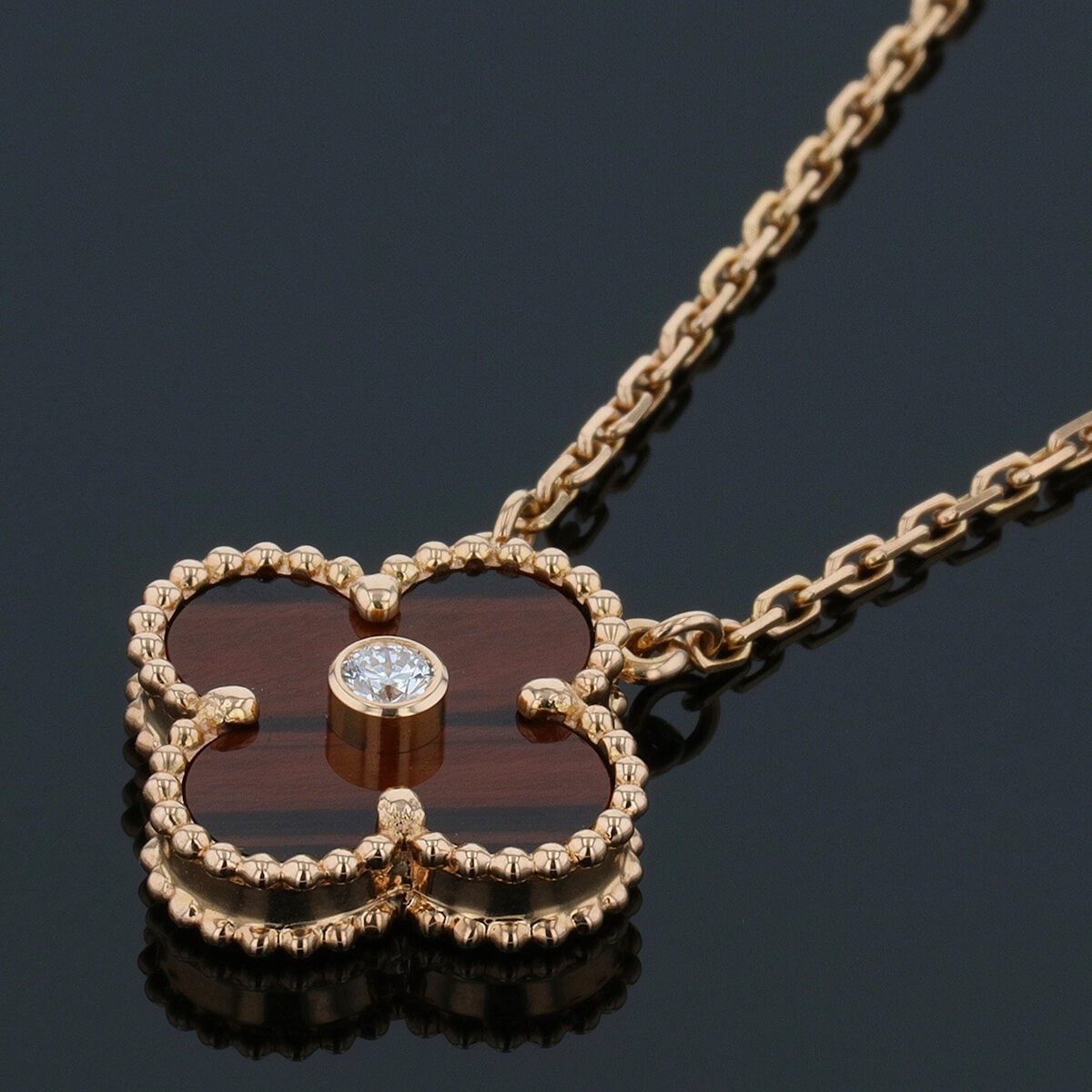 Van Cleef & Arpels Vintage Alhambra gold, bull’s eye quartz and diamond necklace