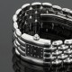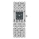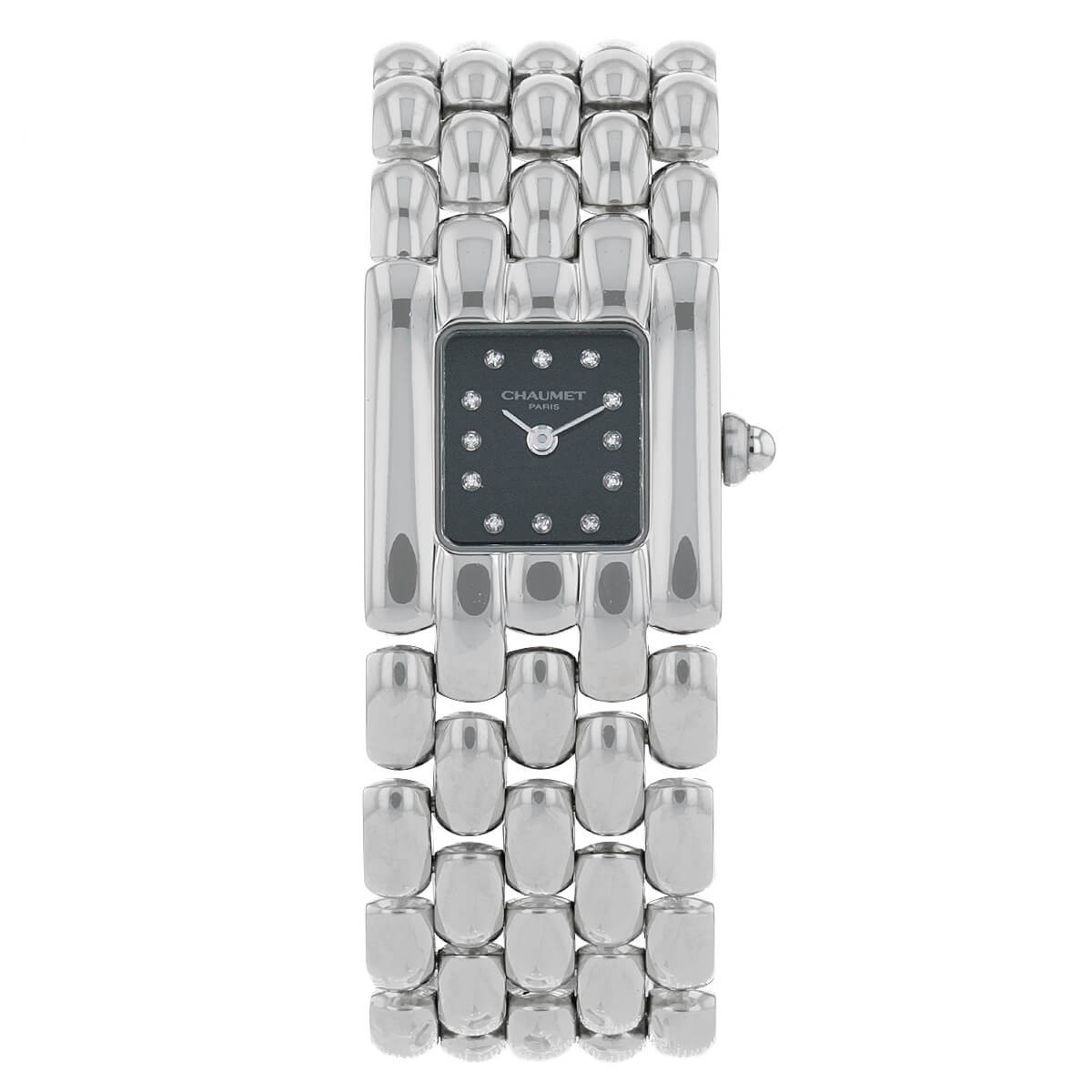 Montre bracelet de femme en acier, cadran noir avec index ornés de diamants, lunette godronnée. Mouvement quartz. Bracelet acier, maillons articulés avec boucle déployante en acier. Signée et numérotée.