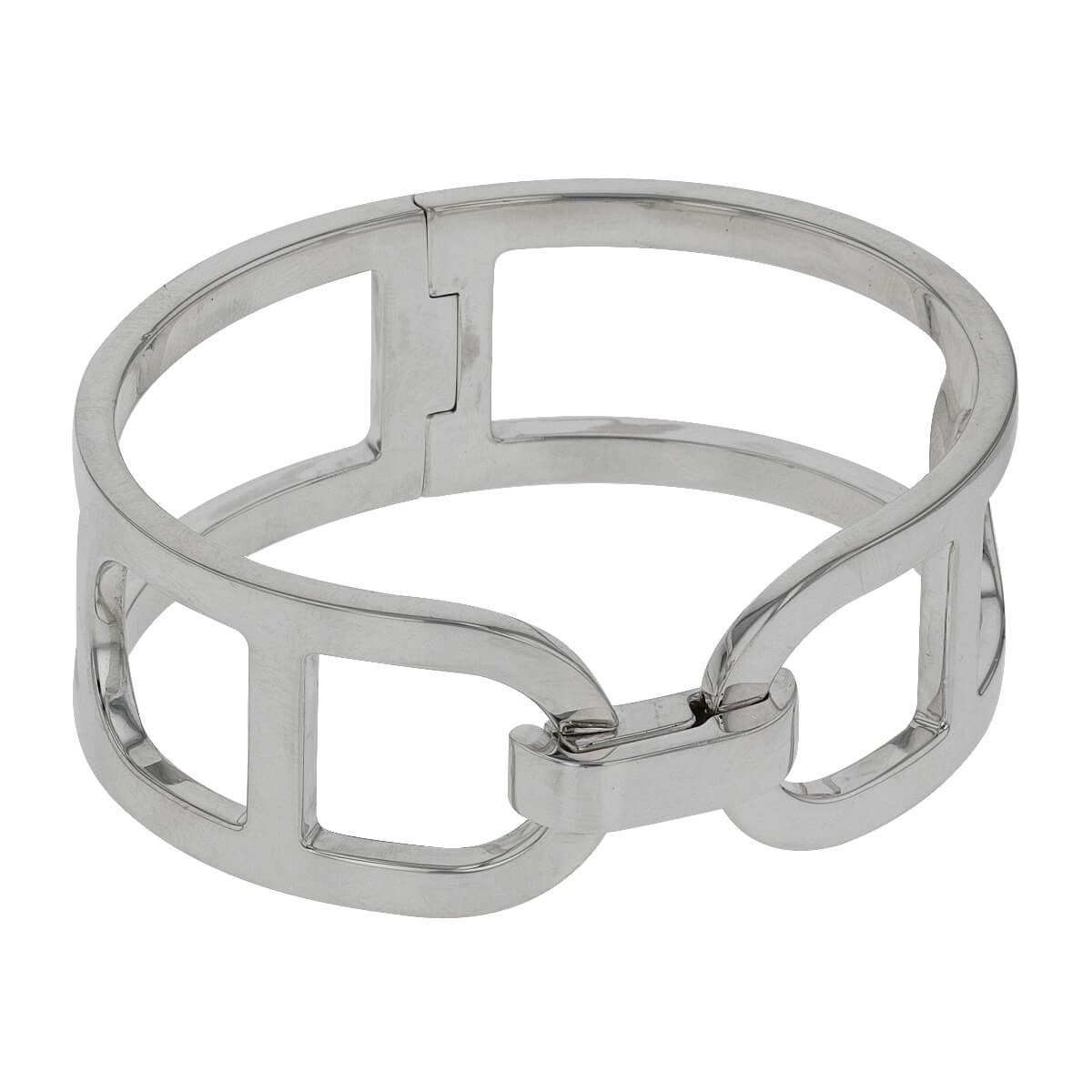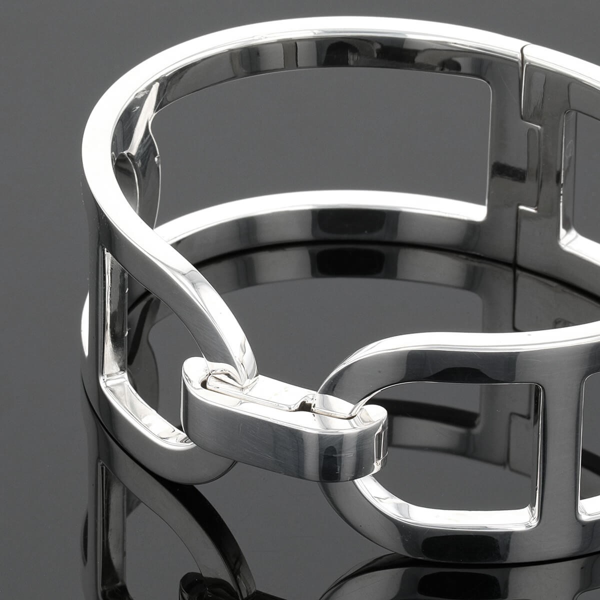 Bracelet en argent ajouré, stylisant le motif Chaîne d’Ancre de la maison Hermès, centré d’un fermoir à cliquet. Signé et numéroté.