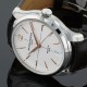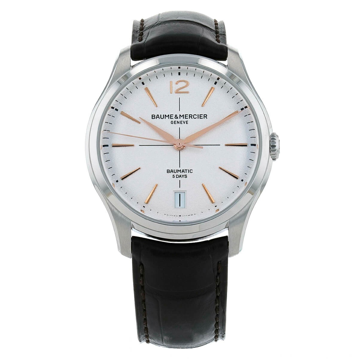 Montre bracelet d’homme en acier, cadran blanc avec chiffre arabe et index appliqués, chemin de fer pour les minutes, affichage de la date par guichet à 6 heures. Fond de boîte transparent dévoilant son mouvement automatique. Bracelet en crocodile marron avec boucle déployante en acier. Signée et numérotée.