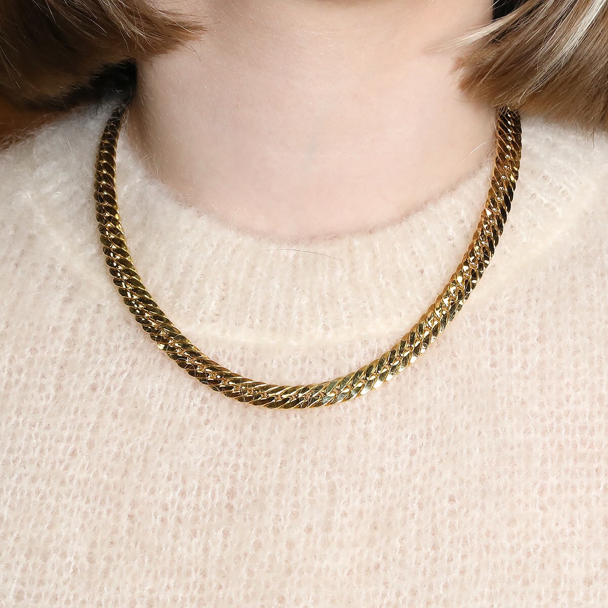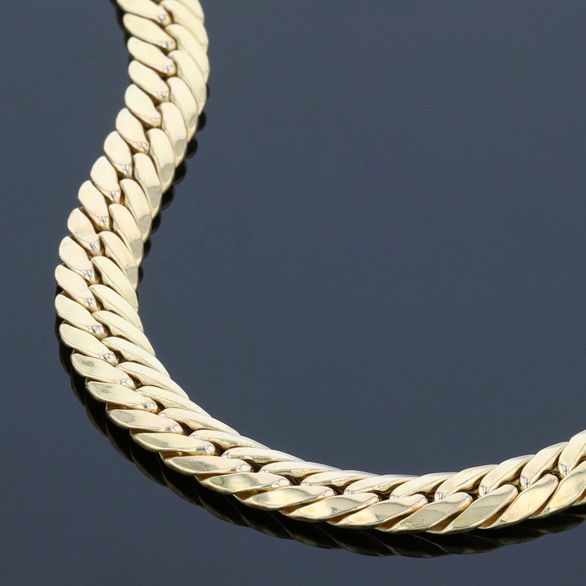 Collier en or jaune, maille anglaise, agrémenté d’un fermoir mousqueton.