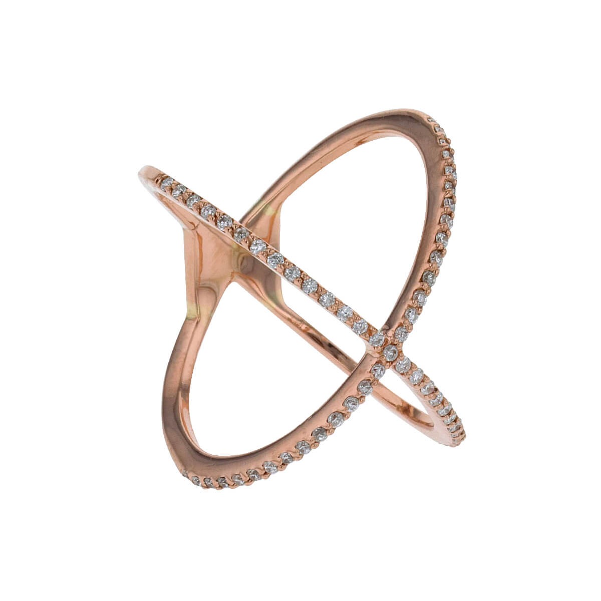Bague en or rose, formant un motif croisé serti de diamants.
