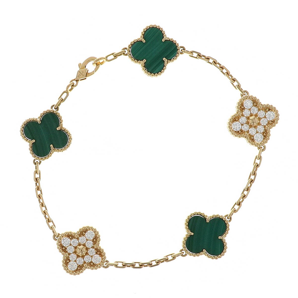 Van Cleef & Arpels Vintage Alhambra malachite, diamonds and gold bracelet
