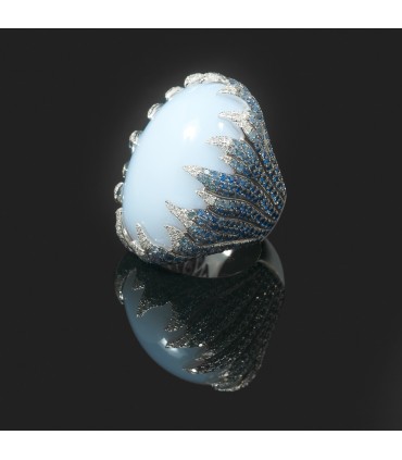 A sapphires, diamonds, calcedony and 18 k gold ring. Signed Victoria Casal.