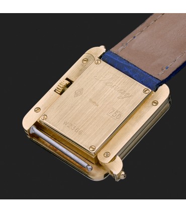 Montre bracelet de femme en or jaune, cadran nacré avec index diamantés appliqués, lunette godronnée. Bracelet en lézard bleu interchangeable avec fermoir invisible à glissière. Signée et numérotée W 2366. Accompagnée de 3 bracelets Poiray et 2 non signés.