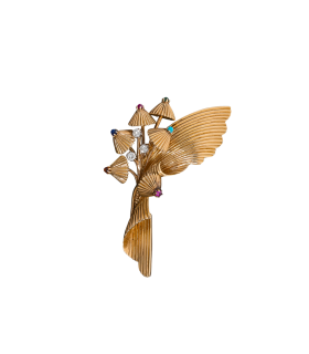 A diamonds, color stones and 18 k gold brooch. Circa 1950.