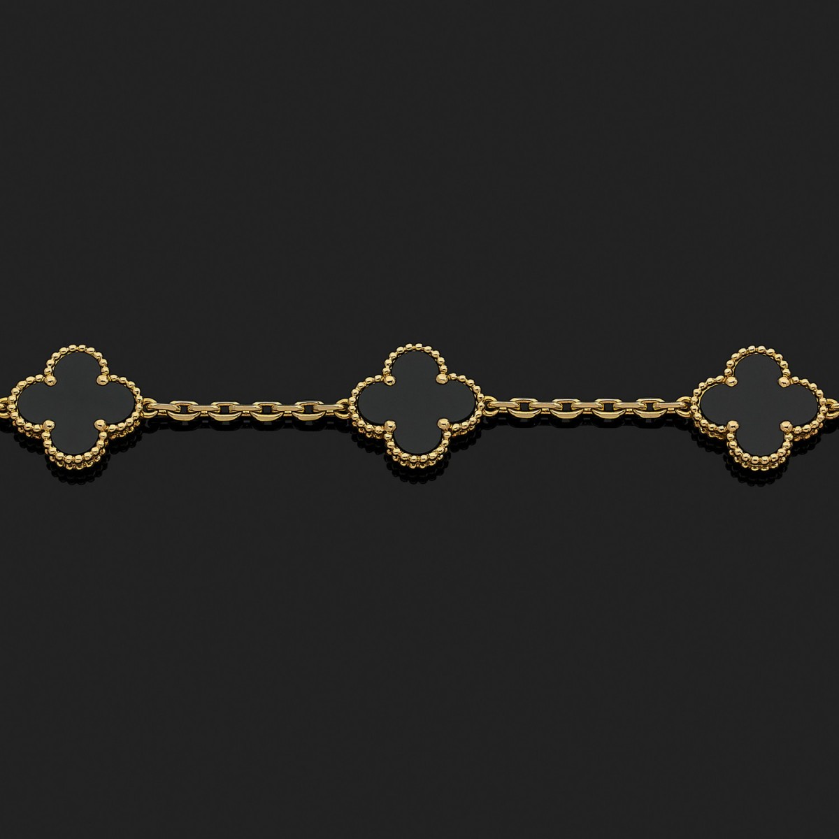 Bracelet en or jaune, composé de 5 motifs Alhambra en onyx. Signé et numéroté.