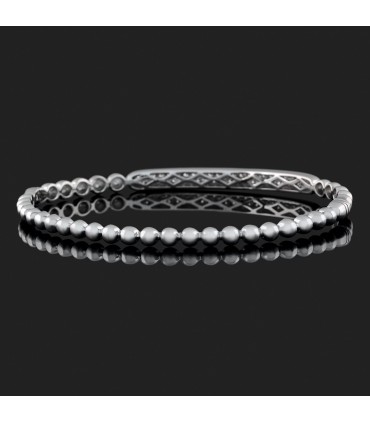 Bracelet rigide en or jaune, à décor perlé orné d’une plaque pavée de diamants.
