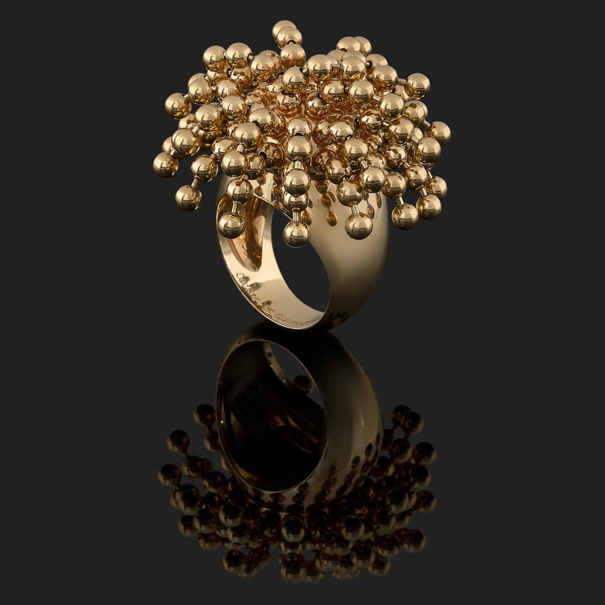 Bague en or jaune, ornée d’un bouquet de perles d’or mobiles. Signée et numérotée.