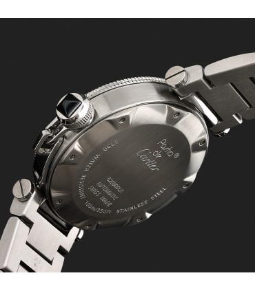 Montre bracelet d'homme en acier, cadran noir avec index et chiffres arabes peints, chemin de fer pour les minutes, affichage de la date par guichet à 4 heures 30, lunette tournante graduée. Mouvement automatique. Bracelet acier, maillons articulés avec boucle déployante en acier. Signée et numérotée 520900LX.